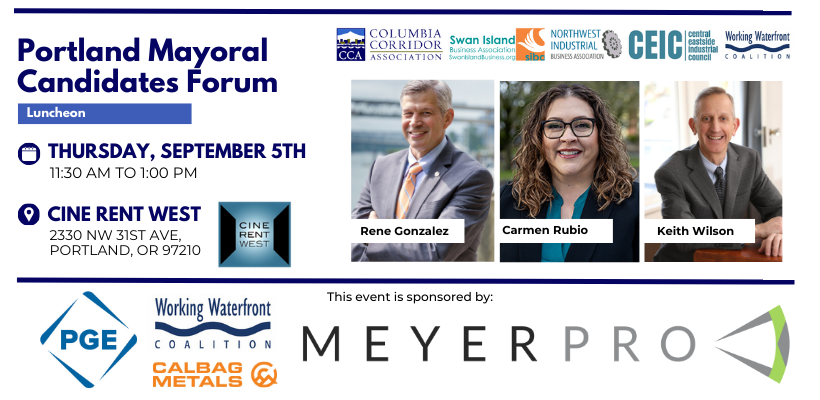 Portland’s Industrial Districts welcomed over 100 people on the morning of September 5th to hear the top three contenders for Portland’s next Mayor; Carmen Rubio, Rene Gonzalez, and Keith Wilson. Each candidate captivated the audience with inspiring perspectives and bold visions for the future, tackling some of the city’s most urgent issues.